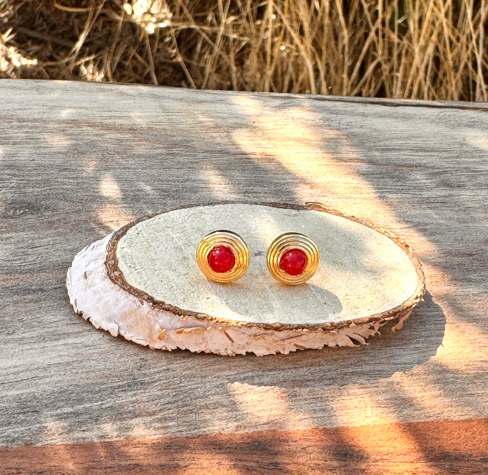 These coral jade studs carry the grounding, life-force energy jade is known for — protective, stabilizing, and full of quiet courage. Their rich red color brings a burst of warmth to your day, encouraging confidence, emotional balance, and a deeper connection to your own inner fire.